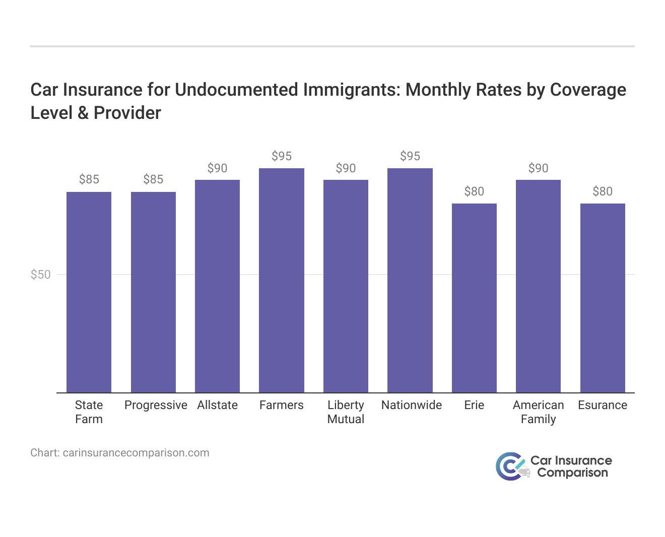 Undocumented Immigrants Car Insurance Monthly Rates by Provider & Coverage Level